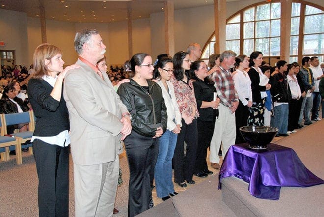 The rite was celebrated at three different parishes that day in order to accommodate the numbers of people preparing to join the church at Easter. Twenty or more parishes were represented at each rite, which were also held at Transfiguration Church, Marietta, and Holy Cross Church, Atlanta, earlier in the day.