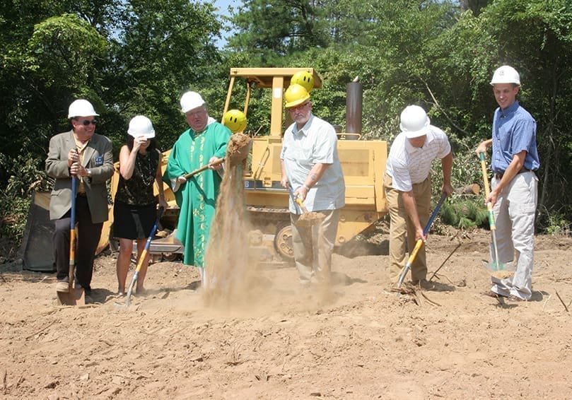 Members of St. Benedict Church gathered in the bright summer heat of July 26 to break ground for a new parish family center at the church. The center and surrounding 2.8 acres of land will be used to conduct parish-wide activities such as carnivals, parish picnics, Friday night movies for families, outdoor Masses, outdoor Christmas scenes and special events in an outdoor green space environment. The estimated cost of the project is $2 million.