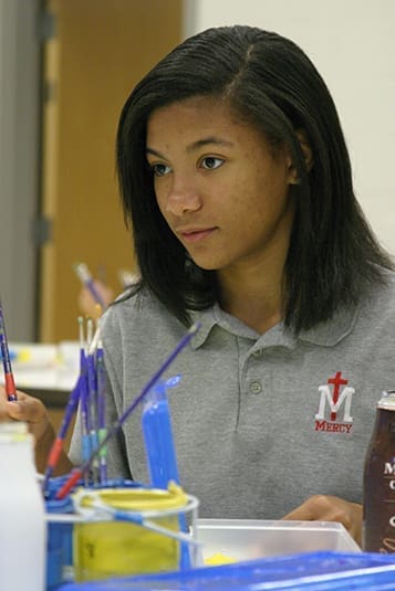 GRACE (Georgia Residents Assisting Children’s Education) Scholar Rachelle Brown works on project in her art class. Brown, a freshman, attends Our Lady of Mercy High School, Fayetteville. Photo By Michael Alexander