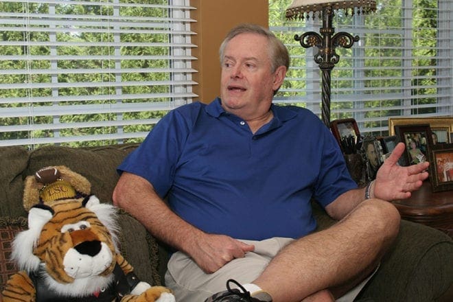 Sitting beside a stuffed Louisiana State University tiger, Anton Reel III of Washington, D.C. talks about the positive experience his family has had with Hospice Atlanta regarding his mother’s care. His mother and father are graduates of the university. Photo By Michael Alexander
