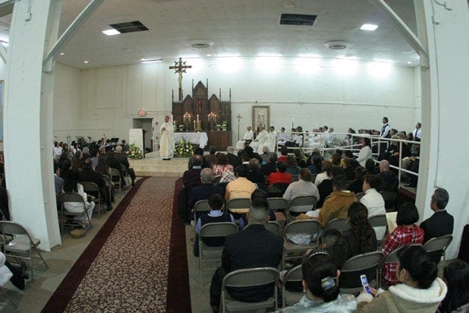 Contributing to the growth, St. Michael’s evangelization efforts have included door-to-door visitations, retreats and prayer groups. For example, a family takes home a Guadalupe image for a week and prays the rosary, inviting other families to participate. The parish “is very overcrowded. It is a good thing. There is a lot of desire to come to church and to live the faith. We have done a lot of evangelization that has motivated people to wake up their faith and come back to church,” said Father Fabio Sotelo, St. Michael’s pastor since 2005. “More people have joined us (at the pastoral center) coming to church, many un-churched people. Once they know they have the opportunity to go to church in the States, they come.”