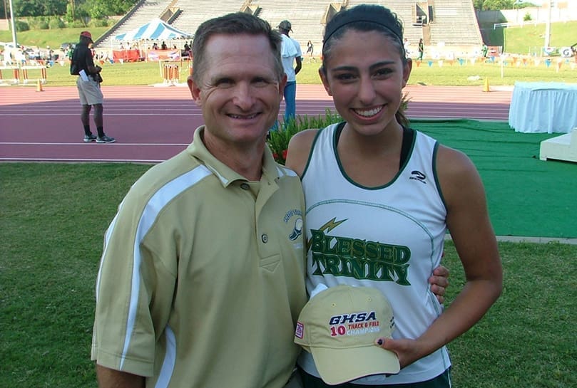 In track and field, Blessed Trinity junior Samantha Sanchez captured the AA state championship in the pole vault at the girls state track meet in Albany. This year was a rematch of the 2009 competition between Sanchez and Greater Atlanta Christian School pole-vaulter Claire Goodson. Last year Goodson won by setting a new state record of 10 feet, 7.5 inches while Sanchez finished as runner-up. This year the roles were reversed as Sanchez won the competition by breaking Goodson’s record and setting a new state meet record of 11 feet on her first attempt.