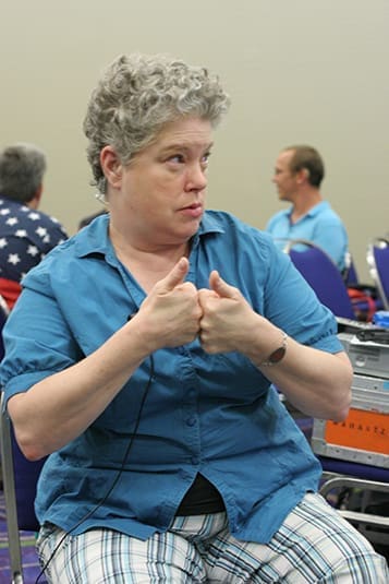 Sue Reagan, a friend of the deaf community and a member of Transfiguration Church, Marietta, participates in a breakout session during the Deaf Track. Reagan has been using American Sign Language for 25 years. Photo By Michael Alexander