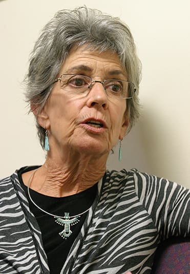 Norma Price talks about a new book she co-authored with two others entitled Crossing with the Virgin: Stories from the Migrant Trail. The book is a collection of 39 stories told by migrants about their perilous journey across the desert into America. Photo By Michael Alexander