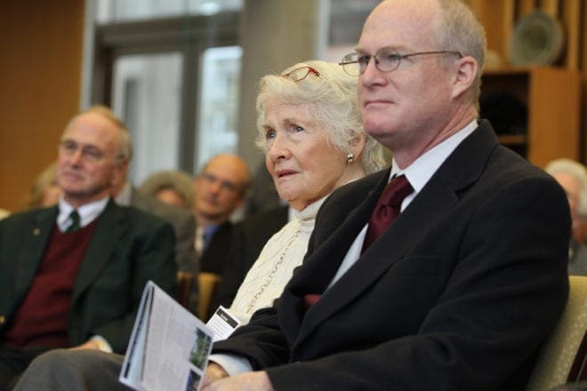 Following the Mass, the crowd gathered in the dining room for sweet and savory treats and to share their memories of the last 50 years. Among those in attendance was Betty Smith, a benefactor of Ignatius House who was present for the first retreat held on the grounds some 50 years ago.