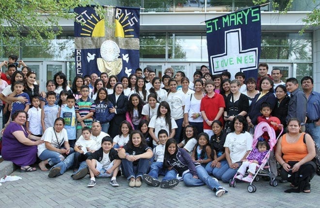 St. Mary’s Church, Rome, brought 85-90 youth on two buses to the Eucharistic Congress, June 25. Photo By Michael Alexander