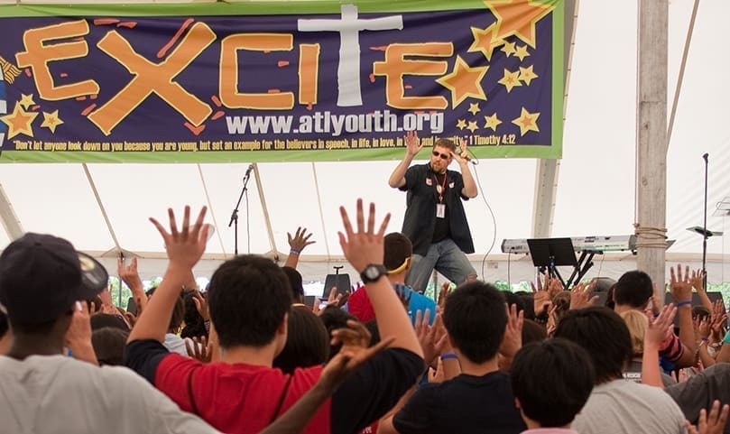 This year the youth track was moved outside (and renamed to EXCITE!) to give a different dynamic to the event and also to provide more space inside for other growing tracks. While temperatures neared 90 degrees, the teens did not seem to mind as they stayed hydrated and positioned themselves in front of the many fans located throughout the large tent.