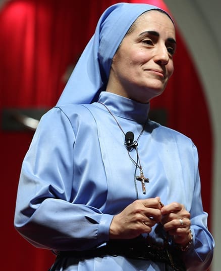The diminutive 4-foot-10-inch Iraqi woman—dressed in the simple blue habit of her order— stepped in front of the podium in the cavernous Georgia International Convention Center hall to tell the crowd her story of growing up in a war-torn nation wondering if her country would ever see peace.