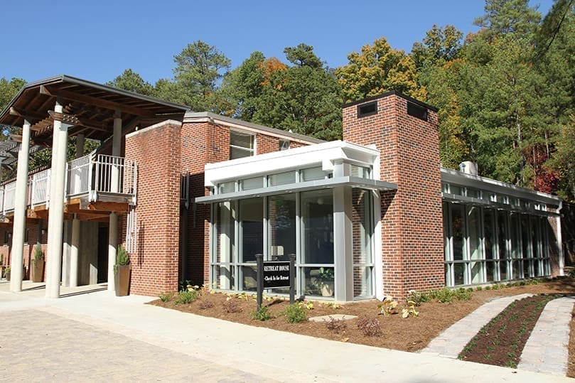 A newly constructed resource building at the Ignatius House Jesuit Retreat Center was recently dedicated on Tuesday, Oct. 25. The dedication was the capstone of the completion of the new J. Robert Fitzgerald Resource Center and also celebrated renovations to the retreat house, including an upgraded entrance and lobby atrium.