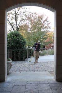 Facilities supervisor Leroy Chaney sweeps the leaves off the walkway as he prepares the premises for the busy day ahead. Chaney has been employed at the cathedral for 18 years and his day starts as early as 6 a.m.