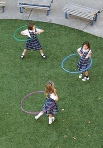 Clockwise, from top left) First graders Tara Zwald, Caterina Cardamone and Lily Stokes enjoy a moment of hula-hoop during recess.