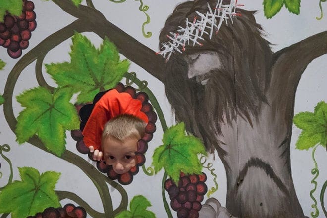 Five-year-old Daniel Dipaulo puts himself within the vine of Jesus inside the Adore! Kid Track Saturday. Photo By Thomas Spink/Archdiocese of Atlanta