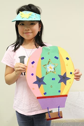 Ten-year-old Nancy Bui shows off the hot air balloon and visor she made in the arts and crafts class, June 27. Photo By Michael Alexander
