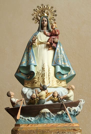 - Around 1600 the statue was found floating in the ocean by three men, one a slave. They are traditionally called the “three Juans” and they were on the ocean gathering salt. A storm erupted and they prayed for protection. They found shelter on an island and the next morning they spotted the statue, with the Virgin holding Jesus and a cross.