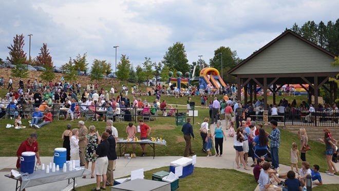 St. Benedict parishioners enjoy food, games and fellowship following the silver jubilee Mass. Photo by Cindy Connell Palmer/Archdiocese of Atlanta