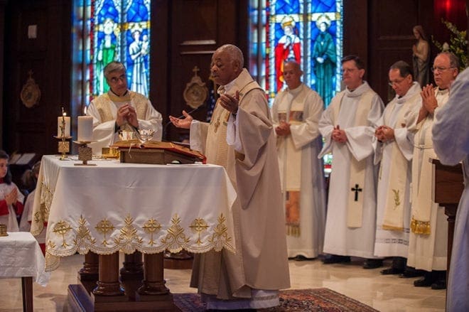 Archbishop Wilton D. Gregory was the celebrant at the Sept. 29 Deo Gratias Mass, along with priests of the archdiocese. Photo By Gibbs Frazeur/Archdiocese of Atlanta