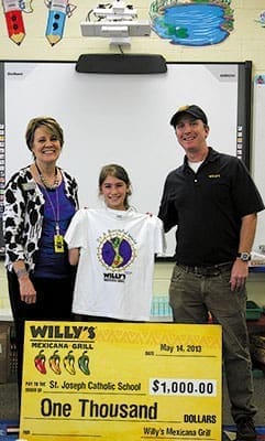The student at St. Joseph School, Marietta, won a $1,000 donation to her school as her top prize in Willy’s Mexicana Grill T-shirt design contest.