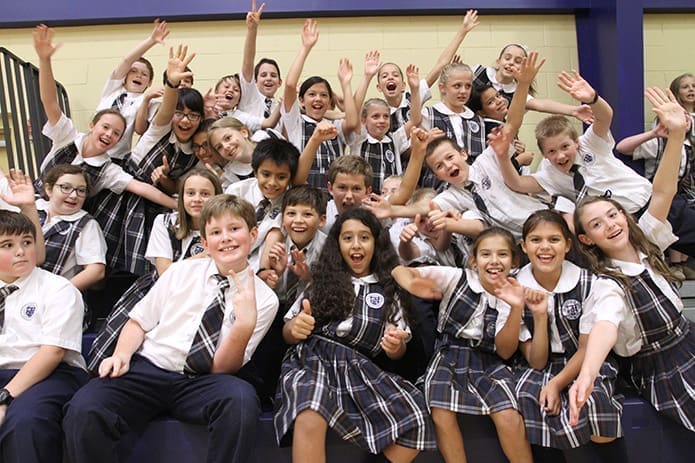 The fifth-graders, like a majority of the student body, were filled with excitement preceding and after the announcement made by principal and Dominican Sister Mary Patrick on Sept. 24. At approximately 2:45 p.m. she informed the students and staff that St. Catherine of Siena was one of 286 schools across the country recognized as a 2013 National Blue Ribbon School. Photo By Michael Alexander