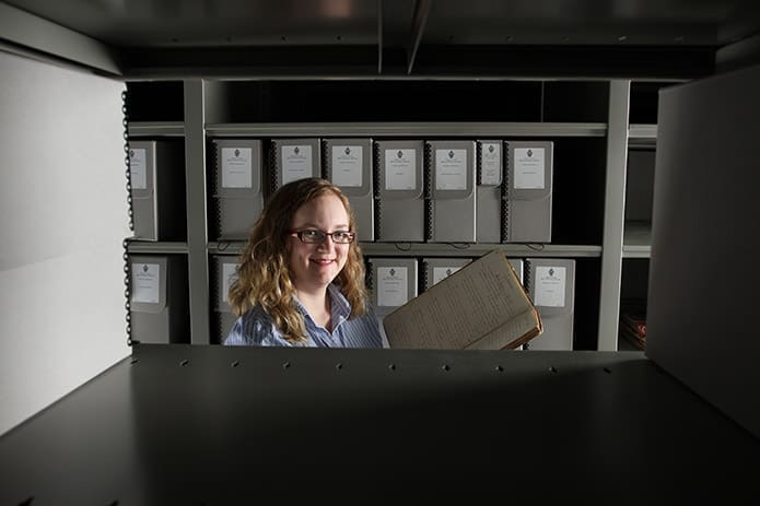 In addition to record preservation and management, the Office of Archives and Records is also open by appointment for scholarly research. As the staff archivist, Richardson especially likes this part of her job.