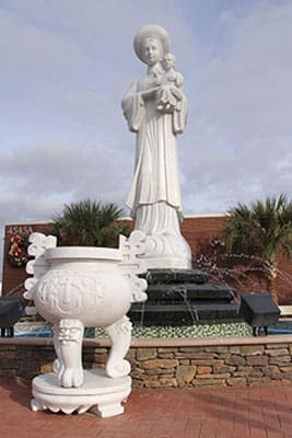 A statue of Our Lady of La Vang rises above the entrance to the grounds of the Holy Vietnamese Martyrs Church, Norcross. On Oct. 16 Archbishop Wilton D. Gregory and the Archdiocese of Atlanta elevated the mission church to a parish. Photo By Michael Alexander