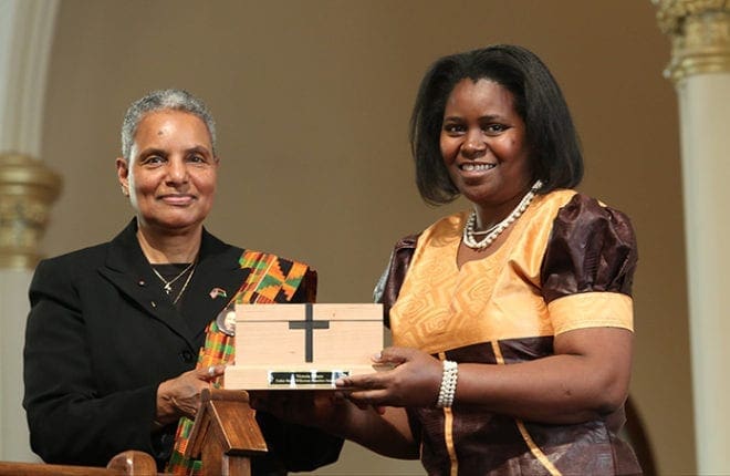 Victoria Mburu, 41, received the Father Bruce Wilkinson Founders Award for bringing the East African immigrants together for support, friendship and worship.