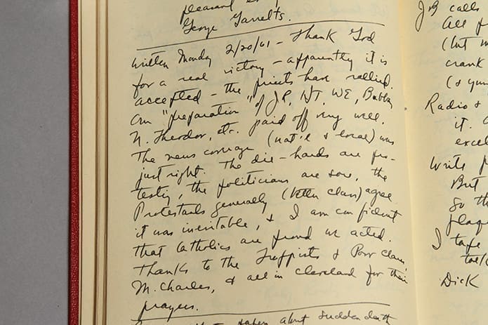 “Dear God, thanks for your steady help. Please keep it up,” he wrote on Jan. 15, 1961, a month before the pastoral letter was published. The night before he said he had “temptations … to postpone the Pastoral Letter … but it’s all clearer in the morning. Pray for strength and courage and … guidance.”