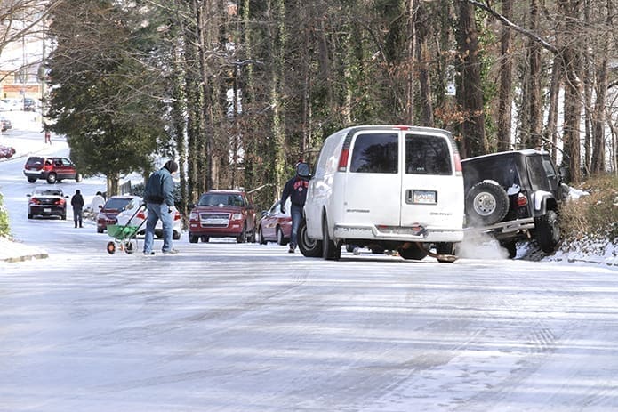 Blessed Trinity High School dismissed at 12:07 p.m., more than two and half hours early, “but it was still too late,” said Moore. Over two dozen students and adults stayed overnight at the Roswell school on Jan. 28, led by the school’s computer system administrator, Jason Podhorez, whose son was also among the stranded. The group, including seven parents, spent their night watching movies as streaming Netflix were hooked up to the school theater. Games of ping pong and basketball passed the time, Moore said.