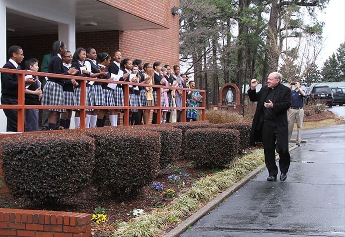 HAPEVILLE—It was a rock stars’ welcome for leaders and staff of the University of Notre Dame’s Alliance for Catholic Education (ACE) during their Feb. 26 visit to St. John the Evangelist School in Hapeville.