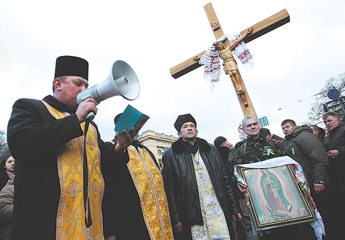 “We are praying for our homeland and the state authorities, and hoping there’ll be no bloodshed,” Father Jan Bielecki of St. Clement Pope and Martyr Parish told Catholic News Service Feb. 28.