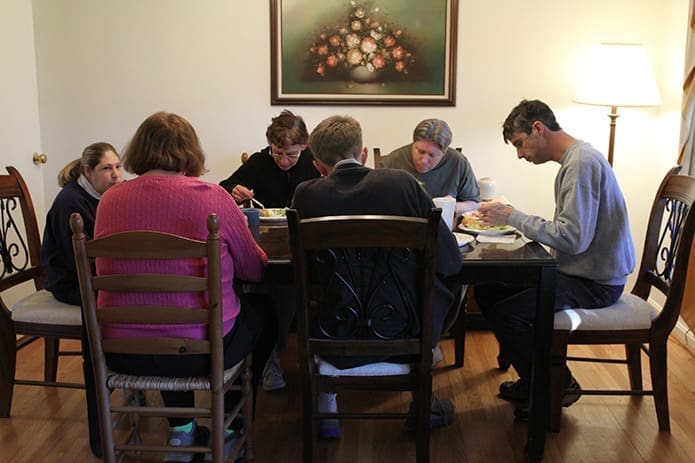 Six of the St. Mary’s Independent Living Extensions’ clients come together for their weekly life skills class and communal meal at the independent living site in Tucker. Photo By Michael Alexander