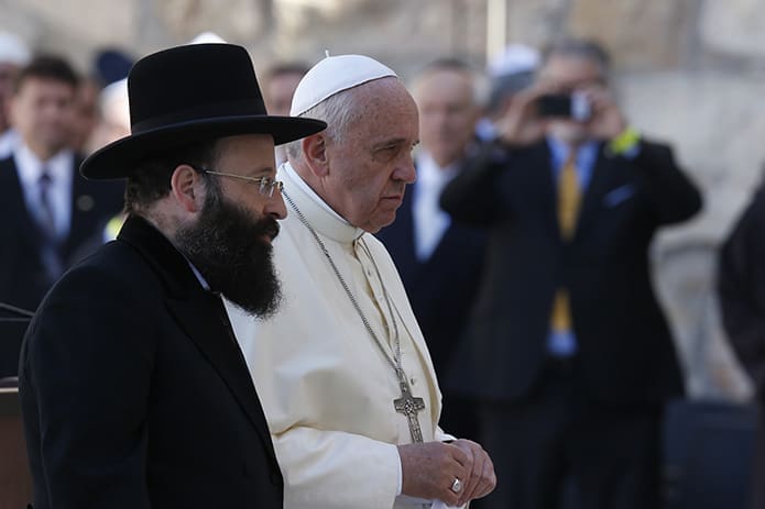 Pope Francis’ next stop was a visit to the two chief rabbis of Israel, leaders of the country’s Sephardic and Ashkenazi communities. The pope told them that relations between Jews and Catholics had progressed greatly in the half century since the Second Vatican Council, which declared that Jews were not collectively responsible for the death of Jesus and that God’s covenant with them had never been abrogated.