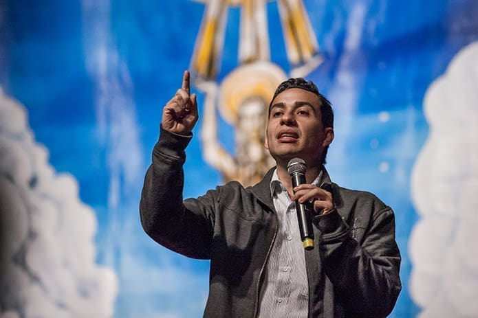 Juan David Henao talks at the 2014 Eucharistic Congress Spanish track June 21 with a lively presentation. Photo By Thomas Spink