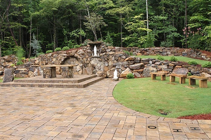 Cerinetti volunteered to build the project for free, redesigning what had been a flat, forested parcel on the parish grounds. Cerinetti is a 30-year veteran of stonework.