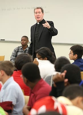 “It’s alive. It’s a real change,” said the principal, Jesuit Father Jim Van Dyke. “It is wonderful to have the building filled with students.”