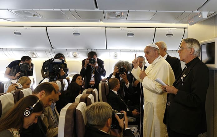 Pope Francis made his remarks Aug. 18 during an hour-long inflight news conference on his way back from South Korea.