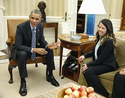 After she was released from the hospital, she paid a visit to President Barack Obama in the Oval Office at the White House.