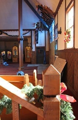 The church is a wooden structure built in 1982 in the tripartite style of architecture, in which the narthex, nave and altar are all in a single west-east axis. Father Scott has served as its priest since then.