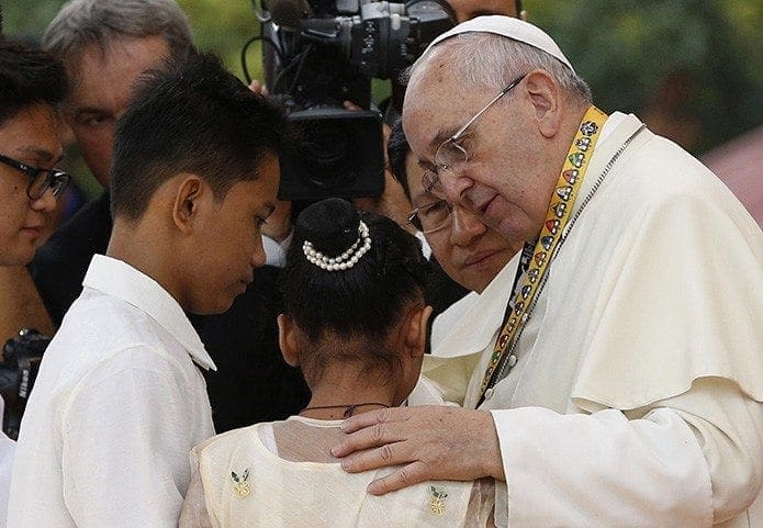 MANILA, Philippines (CNS)—The realities of life described by young people, especially the tearful question of a 12-year-old girl about why God allows suffering, led Pope Francis to set aside the first text he had prepared for a meeting Jan. 18 with the young people of the Philippines.