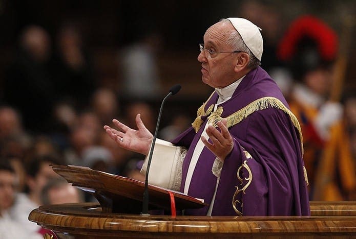 The Gospel reading at the penance service was the story of the sinful woman who washed Jesus’ feet with her tears and dried them with her hair. Every time one goes to confession, the pope said, “we feel the same compassionate gaze of Jesus” that she did.