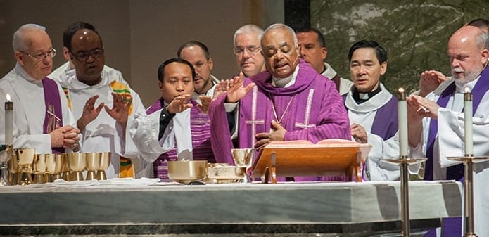 Archbishop Wilton D. Gregory is joined at the altar by priests of the archdiocese, who concelebrate the Recognition Day Mass and honor the women and youth of the year from their own parishes. This year’s Mass was celebrated Feb. 28. Photo by Thomas Spink