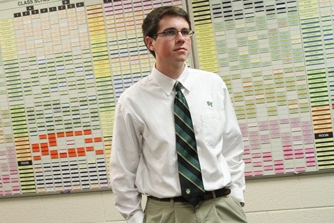 “I remember waking up in an ambulance. That was pretty enlightening,” he said, speaking in a conference room at Blessed Trinity High School. One wall of the room is filled with colorful tabs outlining the school day, class by class. Such is the life of a high school student bound for Notre Dame University that he carries two bags: one for his computer, the other a backpack filled with economics, world religions and calculus textbooks.