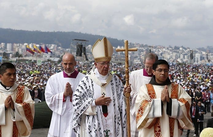 Celebrating Mass for evangelization on July 7 at Quito’s Bicentennial Park, Pope Francis insisted Christians would convince no one of the power of the Gospel if they could not demonstrate in their lives and behaviors that faith pushes a person beyond self-interest to concern for others.