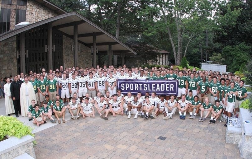 SANDY SPRINGS—Nearly 200 jersey-clad football players, coaches and parents from Blessed Trinity High School, Roswell, and Holy Spirit Preparatory School and St. Pius X High School, Atlanta, participated in an Aug. 5 rosary rally at St. Jude the Apostle Church.
