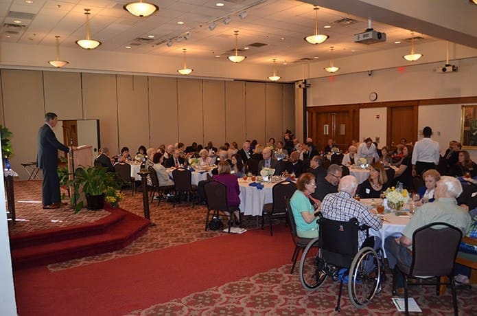 Mark Christopher, chairman of the board of directors for the Catholic Foundation of North Georgia, addresses the Deo Gratias Society members at the luncheon. He reported that the foundation’s assets have grown to $52 million, allowing for grants last year to nearly 180 organizations totaling $1.5 million. Photo By Cindy Connell Palmer