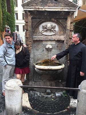 (L-r) Gino Vizzi, his sister Julia and Father Eric Hill, pastor of Prince of Peace Church, Flowery Branch, do some sightseeing around Rome. Father Hill and the Vizzi family left for Italy Oct. 18 and returned to the United States Oct. 23. The trip was meant to fulfill Gino’s wish of meeting Pope Francis. Photo Courtesy of the P4Foundation