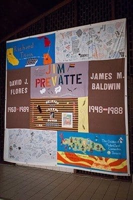 A panel from the NAMES Project AIDS Quilt, which memorializes those who have died from AIDS or related causes, was displayed at a reception after Mass at Immaculate Heart of Mary Church. Former Girl Scouts of the parish created the bottom right corner of the panel in memory of children from Mustard Seed Communities in Jamaica. Photo by Thomas Spink