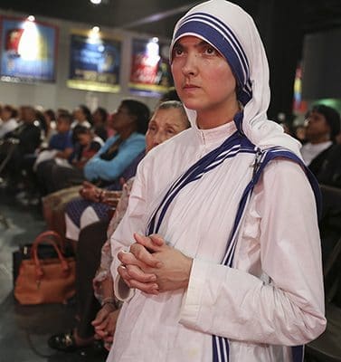 Missionaries of Charity Sister Faustina Maria directs her gaze toward the Blessed Sacrament during the June 3 Eucharistic Congress healing service. Photo By Michael Alexander