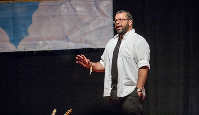 Charismatic speaker Francisco “Pacho” Bermeo, from Colombia, challenges both men and women to become “pregnant with love for Jesus and for one another” as he teaches about mercy as heartfelt concern for another person. Photo By Thomas Spink