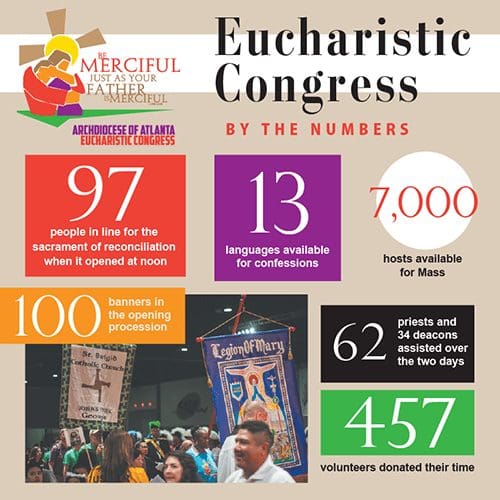 COLLEGE PARK—In celebration of the Holy Year of Mercy and the gift of the Eucharist, tens of thousands of people attended the 2016 Eucharistic Congress of the Archdiocese of Atlanta June 3-4 at the Georgia International Convention Center.