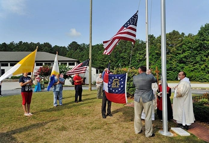 On Independence Day, before the frivolity of barbeques and colorful, streaming fireworks, parishioners gathered to give thanks to God for the blessings of this country and those who swore to uphold it. The parish grounds are along Georgia Highway 20, a four-lane divided road.